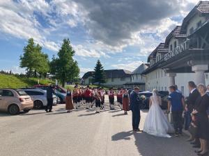 Am 21. Mai 2022 durfte wir mit großer Vorfreude bei der Hochzeit von unserer Musikerin Stefanie und ihrem Daniel dabei sein. In einem Festzug begleiteten wir das Brautpaar, die Festgäste sowie die Feuerwehr in die Pfarrkirche Kematen, wo wir einen Teil zur musikalischen Gestaltung der Messe beitragen durften. Nach der Hochzeitsmesse fand bei strahlendem Sonnenschein die Agape im Martinshof statt. Danach ging es ins Landhotel Schicklberg, wo den restlichen Abend ausgiebig gefeiert wurde.